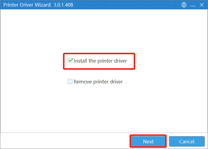 เปิดไดรเวอร์เครื่องพิมพ์ฉลาก เลือก ติดตั้งไดรเวอร์เครื่องพิมพ์ คลิก “ถัดไป”